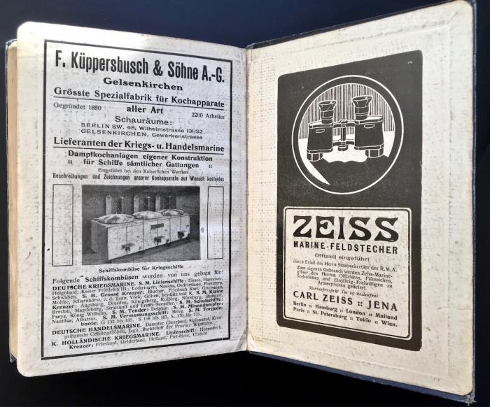 1) [На нем. яз. Карманный справочник военно-морского флота Вейера. Выпуск за 1913 год]. Taschenbuch der Kriegsflotten. 1913. - 500, [55] с. ил., [рекл. объяв.]; 17 Х 12,5 см.;